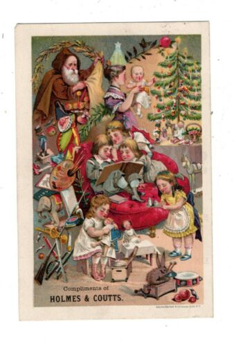 CHRISTMAS TRADE CARD~HOLMES & COUTTS~BISCUITS~19th CENTURY~SANTA BROWN SUIT