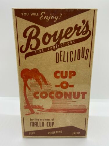 Title (ebay affiliate link): Vintage Boyer''s Cup-O Coconut Retail Candy Bar Box Mallo Cup Altoona, PA
