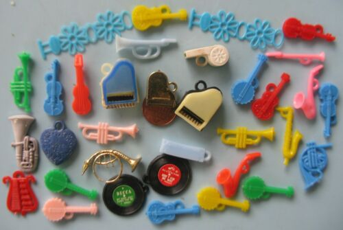 Title (ebay affiliate link): 25+ MIXED INSTRUMENTS PLASTIC CHARMS CRACKER JACK/GUMBALL/DIME STORE CHARM/PRIZE