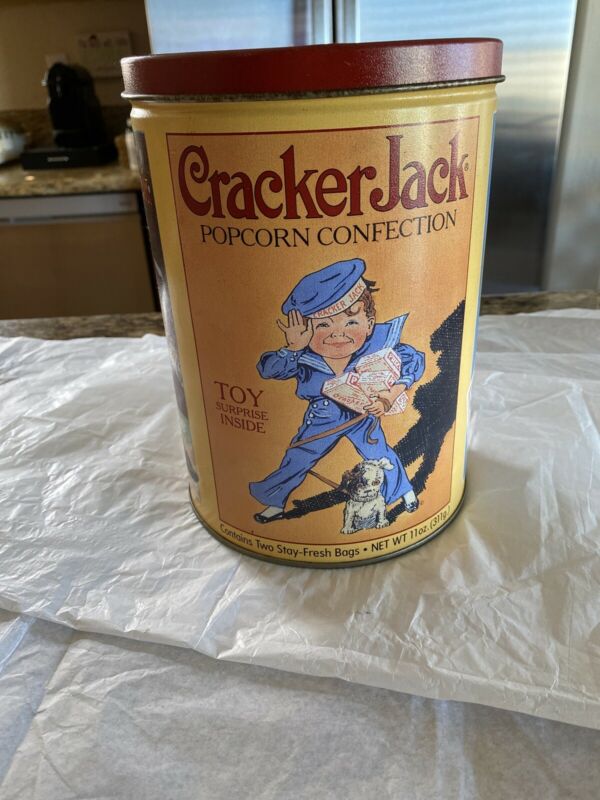Title (ebay affiliate link): VINTAGE Rare Cracker Jack Collectors Popcorn Tin Can 1991 Limited Edition 9"x 6"