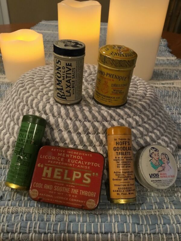 Title (ebay affiliate link): Tins Lot -Laxatives-Ramon-Campho Phenique-Hoff-vicks-Dr.Edwards-Menthol-medical