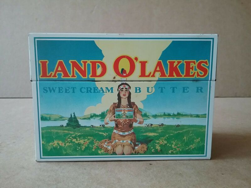 Title (ebay affiliate link): Vintage 1971 Land O'' Lakes Butter Tin Recipe Box w/ Recipes, Offer Cards