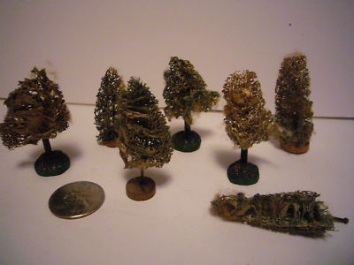 Title (ebay affiliate link): LOT OF 7 ANTIQUE PUTZ VILLAGE LOOFA TREES MINIATURE