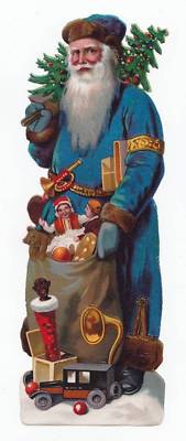 Large Antique Scrap Blue Christmas Santa Doll Tree Toys