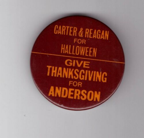 Title (ebay affiliate link): 1980 JOHN ANDERSON FOR THANKSGIVING PIN CARTER & REAGAN FOR HALLOWEEN