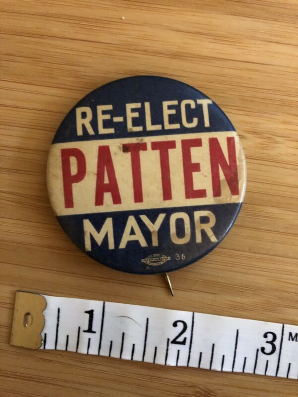 Title (ebay affiliate link): Vintage Pinback Re-Elect Edward J. Patten Mayor Perth Amboy New Jersey 1930s