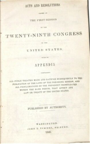 Title (ebay affiliate link): Acts Resolutions 29th Congress 1846 Treaties James K. Polk Rocky Mountains Great