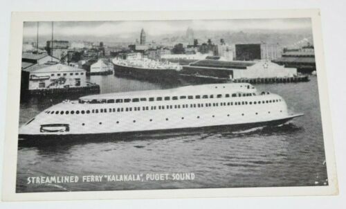 Title (ebay affiliate link): Vntg B&W postcard Streamlined Ferry "Kalakala" Puget Sound ship yard marina