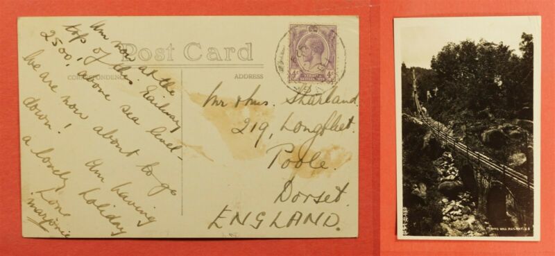 1929 STRAITS SETTLEMENTS MALAYA PENANG HILL RAILWAY REAL PHOTO POSTCARD TO UK