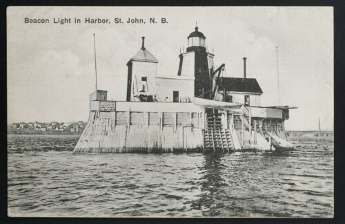 Title (ebay affiliate link): Beacon Light in Harbor St John New Brunswick,collotype.Postmark 1907. Lighthouse