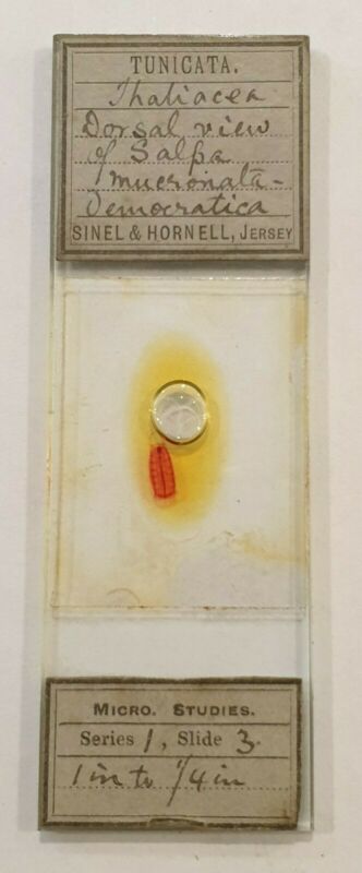 Title (ebay affiliate link): VERY FINE ANTIQUE MICROSCOPE SLIDE TUNICATA DORSAL VIEW OF SALPA BY SINEL JERSEY