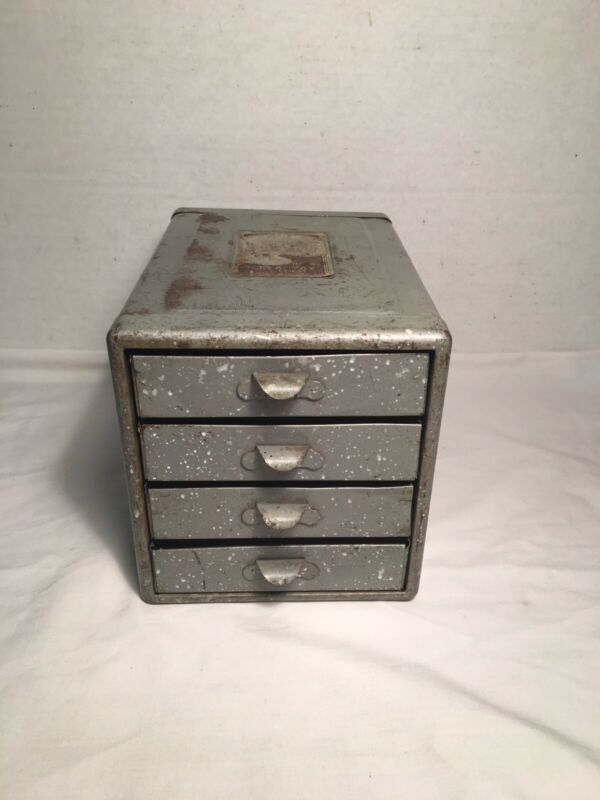 Vintage industrial Metal 4 Drawer Small Parts Cabinet Tool Jewelry Craft Box