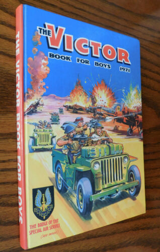 Title (ebay affiliate link): The Victor Book for Boys 1971 vintage childrens annual sport war history stories