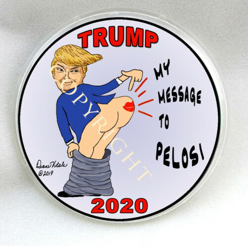 Title (ebay affiliate link): Message to PELOSI Trump 2020 3" large Pinback BUTTON - LTDed artist signed