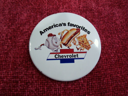 CHEVROLET--Baseball Hot Dogs Apple Pie ORIGINAL Button Pin--N.O.S.