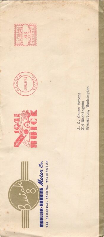 1941 Buick Fire Ball Eight advertising envelope-Tacoma, Washington