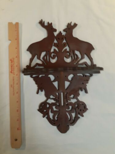 VINTAGE BLACK FOREST DEER STAG/RAM WOOD SHELF ornate wall tramp art fretwork