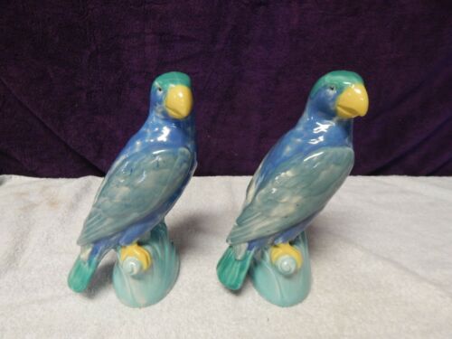 Mintons Set of 2 English Majolica Parrot Figures by Mintons