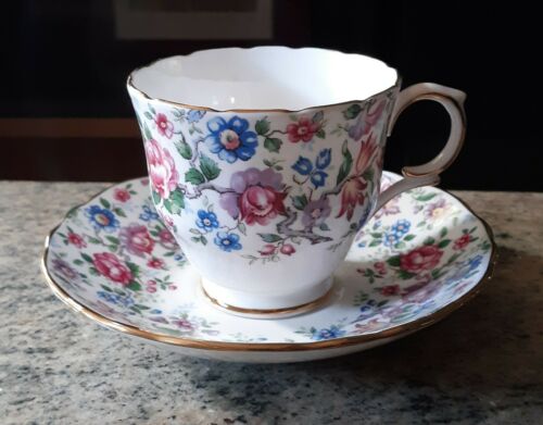 Title (ebay affiliate link): Vintage Royal Victoria Floral Design w/Gold Trim Footed Porcelain Cup & Saucer