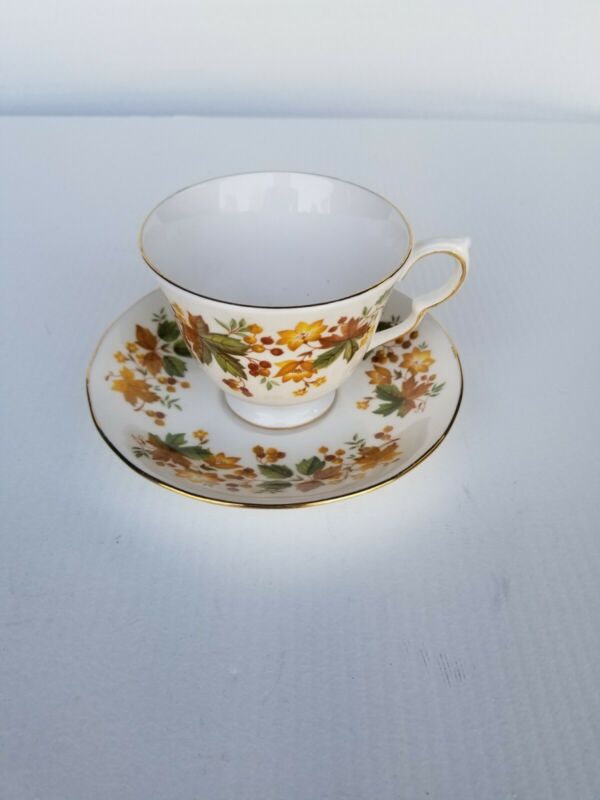 Title (ebay affiliate link): Queen Anne Medina Tea Cup and Saucer #8606 Autumn Leaves Bone China England