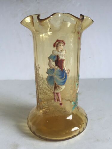Title (ebay affiliate link): Antique Moser Bohemian Amber Optic Rib Enamel Painted WOMAN AND FLOWERS Vase