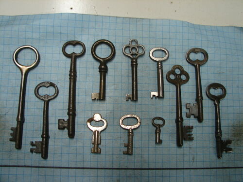 Title (ebay affiliate link): LOT OF 12 ANTIQUE SKELETON, FURNITURE, BARREL, CABINET AND OLD LOCK KEYS
