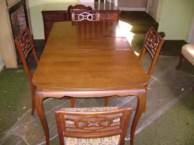 Title (ebay affiliate link): Vintage Solid Wood Table w/Leaf & Four Matching Chairs