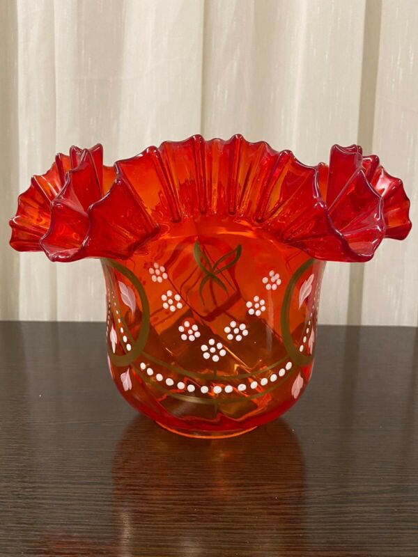 GLASS OIL LAMP SHADE IN EXCELLENT CONDITION