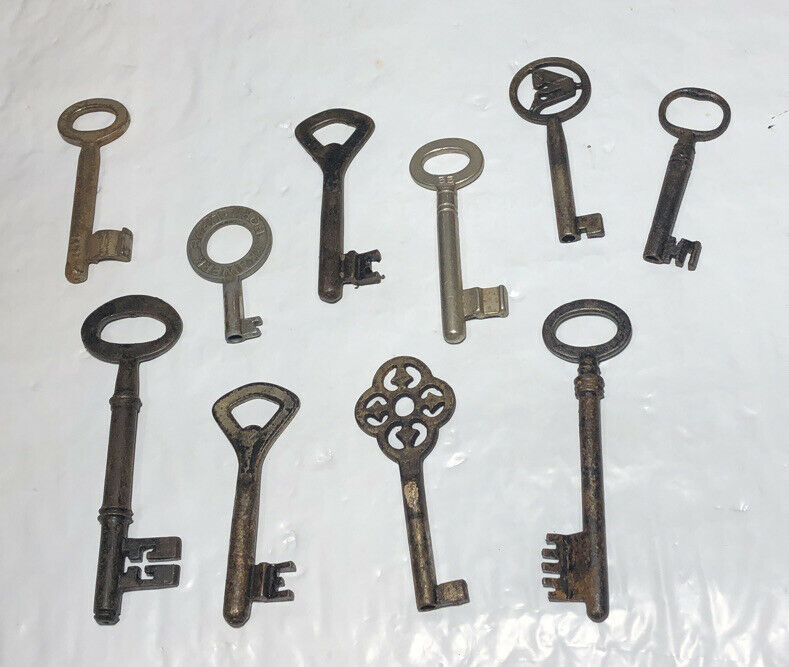 Vintage/Antique Key Lot of 10 Old Furniture Lock Skeleton Barrel Cabinet Door