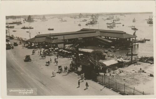 Title (ebay affiliate link): SINGAPORE Real Photo Postcard JOHNSTON''S PIER harbor steamer junks street scene