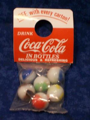 Title (ebay affiliate link): COLLECTIBLE COCA COLA ADVERTISING BAG OF 6 MARBLES