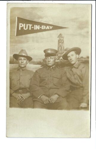 Title (ebay affiliate link): Put-in-bay Ohio RPPC Real Photo Postcard 3 Military Men 1 with Missouri on crest