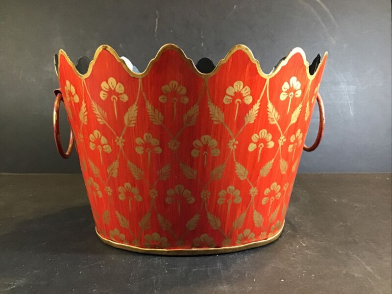 Title (ebay affiliate link): Vintage French Style Painted Toleware Chinoiserie Monteith Planter Bucket Red
