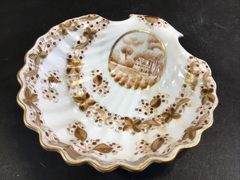Antique French SAMSON Porcelaine De Paris, Hand-Painted Shell Dish Brown Soap