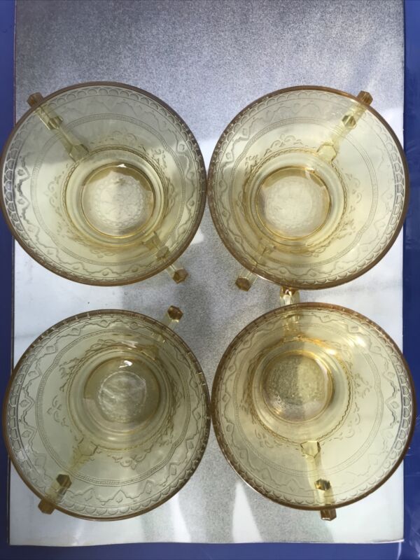 4X Federal Patrician Spoke Amber Double Handle Cream Soup Bowls Depression Glass