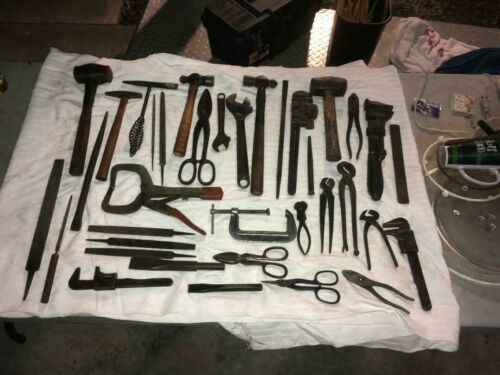 Title (ebay affiliate link): Vintage Lot 36 BLACKSMITH METAL TOOLS HAMMERS NIPPERS FILES Pipewrench clamps