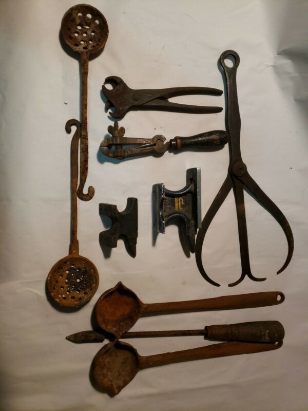 Title (ebay affiliate link): Vintage Lot BLACKSMITH METAL TOOLS Double Caliper Anvil ladle NICE!!