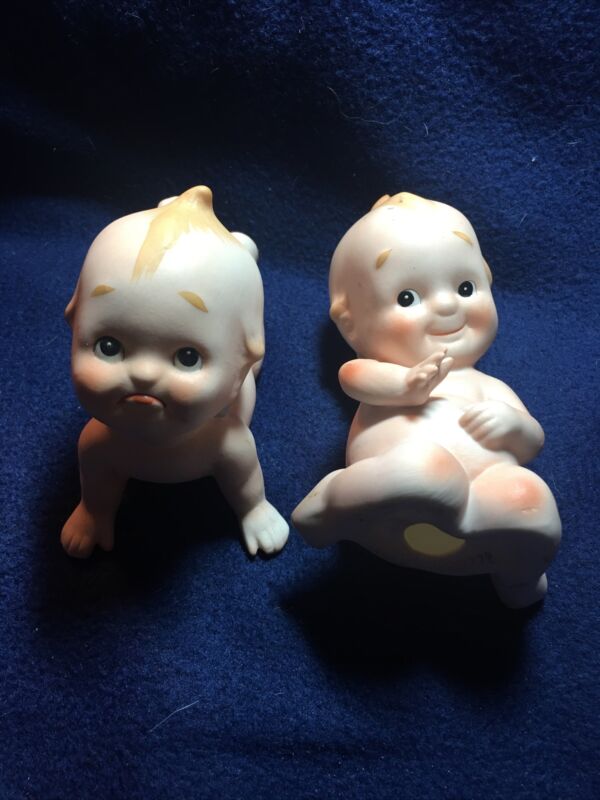 Title (ebay affiliate link): Vintage 2 bisque kewpie doll babies blue wing KW228 by Lefton - One With Label