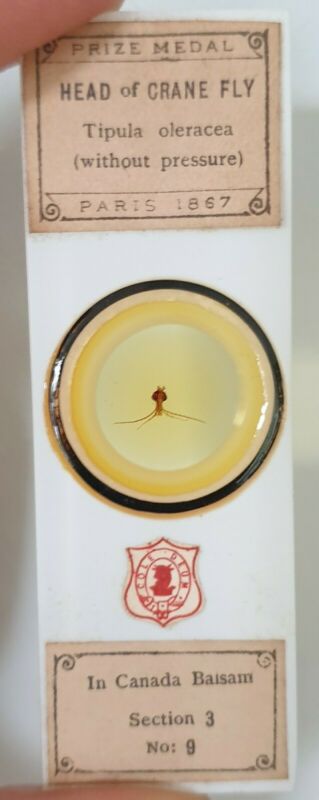 Title (ebay affiliate link): VERY FINE ANTIQUE MICROSCOPE SLIDE HEAD OF CRANE FLY. BY A.C.COLE