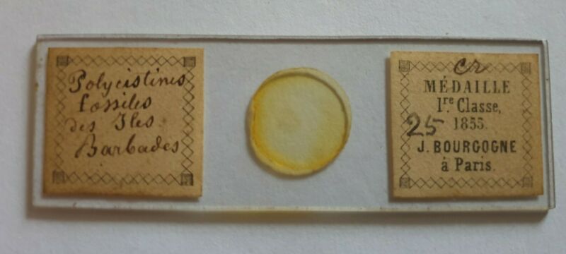 Title (ebay affiliate link): VERY FINE ANTIQUE MICROSCOPE SLIDE FOSSIL POLYCYSTINA BARBADOES BY J.BOURGOGNE