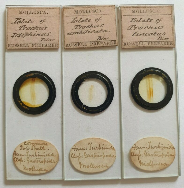 Title (ebay affiliate link): FINE SET OF 3 ANTIQUE MICROSCOPE SLIDES MOLLUSCA PALATE OF BY RUSSELL