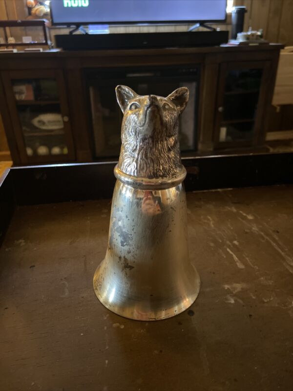 Antique Candle Snuffer Or Cup With Wolf Figurine Never Been Cleaned Great Shape