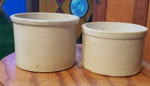 2 VINTAGE SMALLER STONEWARE CROCKS