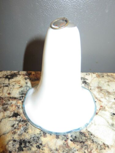 ANTIQUE VINTAGE HANGING OIL LAMP SMOKE BELL TULIP MILK GLASS WITH BLUE CREST