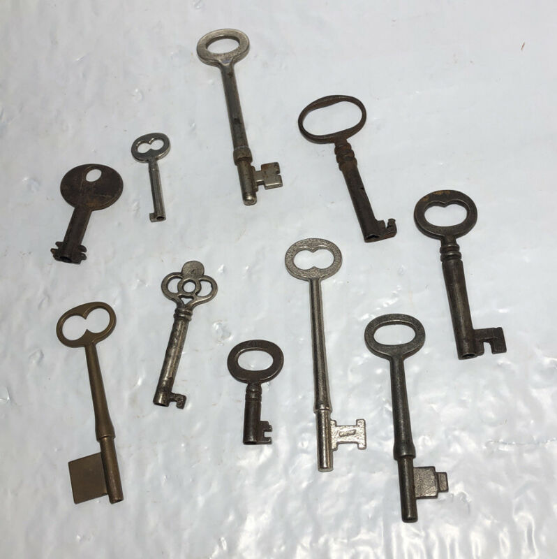 Title (ebay affiliate link): Vintage/Antique Key Lot of 10 Old Furniture Lock Skeleton Barrel Cabinet Door