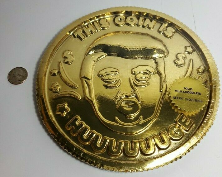 Title (ebay affiliate link): HUUUUUUGE Factory Donald Trump Solid Milk Chocolate 10 Oz. Gold Coin