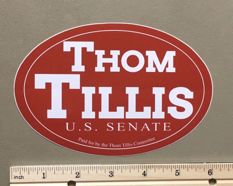 Title (ebay affiliate link): Senator Thom Tillis US Senate Political Campaign Bumper Sticker North Carolina