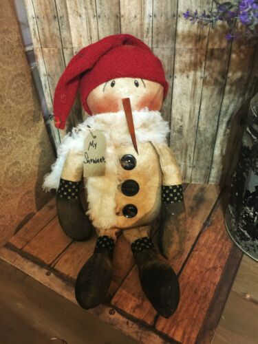 Title (ebay affiliate link): *Primitive 14x6in RED HAT SNOWMAN SITTER FABRIC HANDMADE Country old rusty doll*