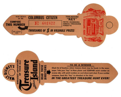 Title (ebay affiliate link): WALT DISNEY TREASURE ISLAND TECHNICOLOR PROMO KEY~COLUMBUS CITIZEN NEWSPAPER
