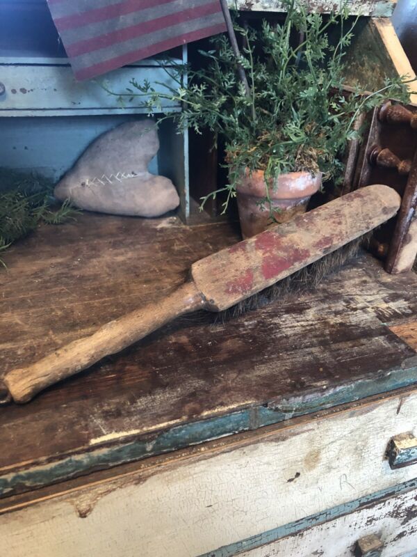 Title (ebay affiliate link): Antique Haberdashery? Tailor Brush Wood Handle Old Red Paint Primitive Horsehsir